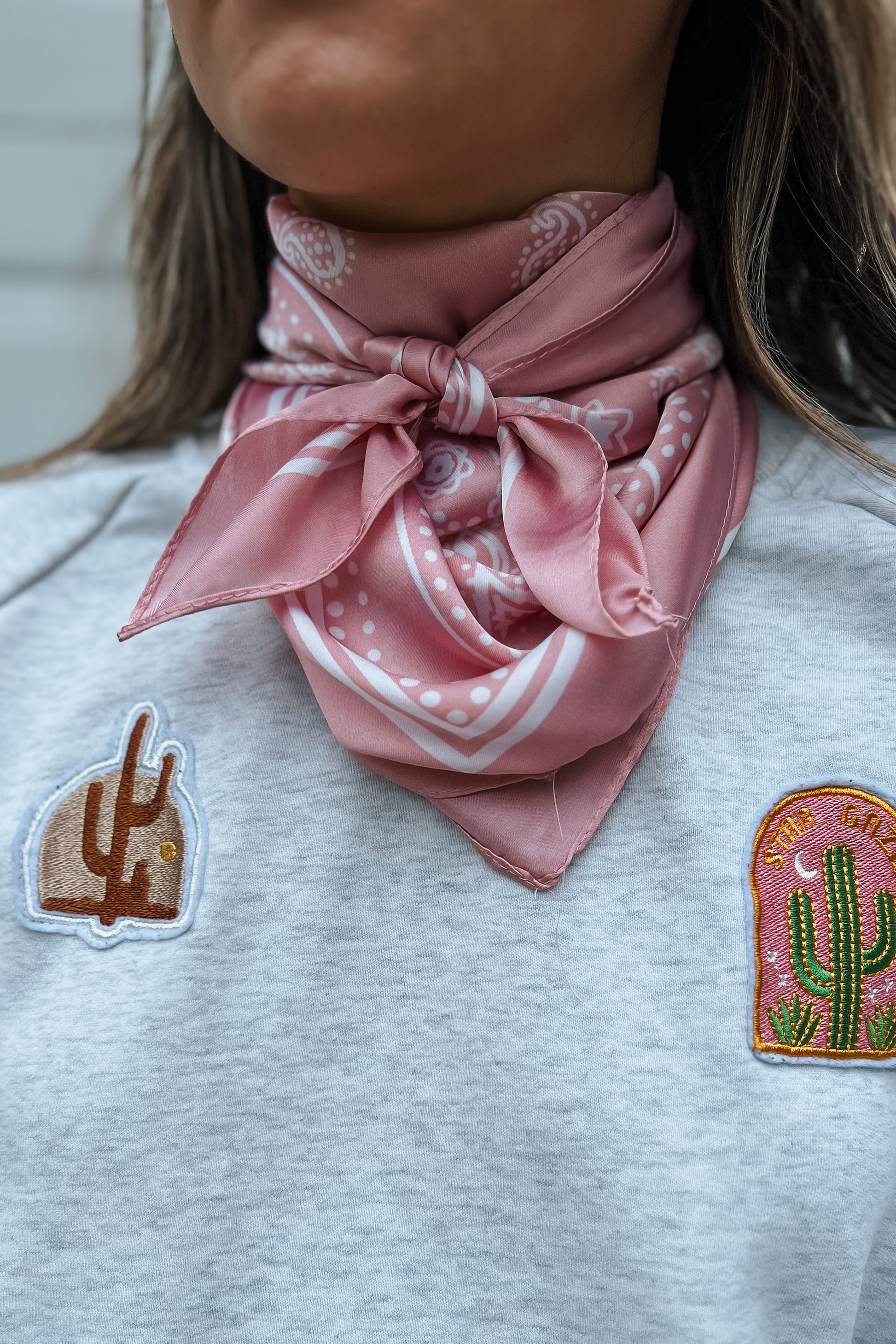 This Pink Bandana Wild Rag is a versatile accessory that adds a touch of western charm to any outfit. Made with a bandana print in a soft light pink color, it can be worn as a scarf, headband, or neckerchief. Perfect for adding a pop of color and style to your wardrobe.