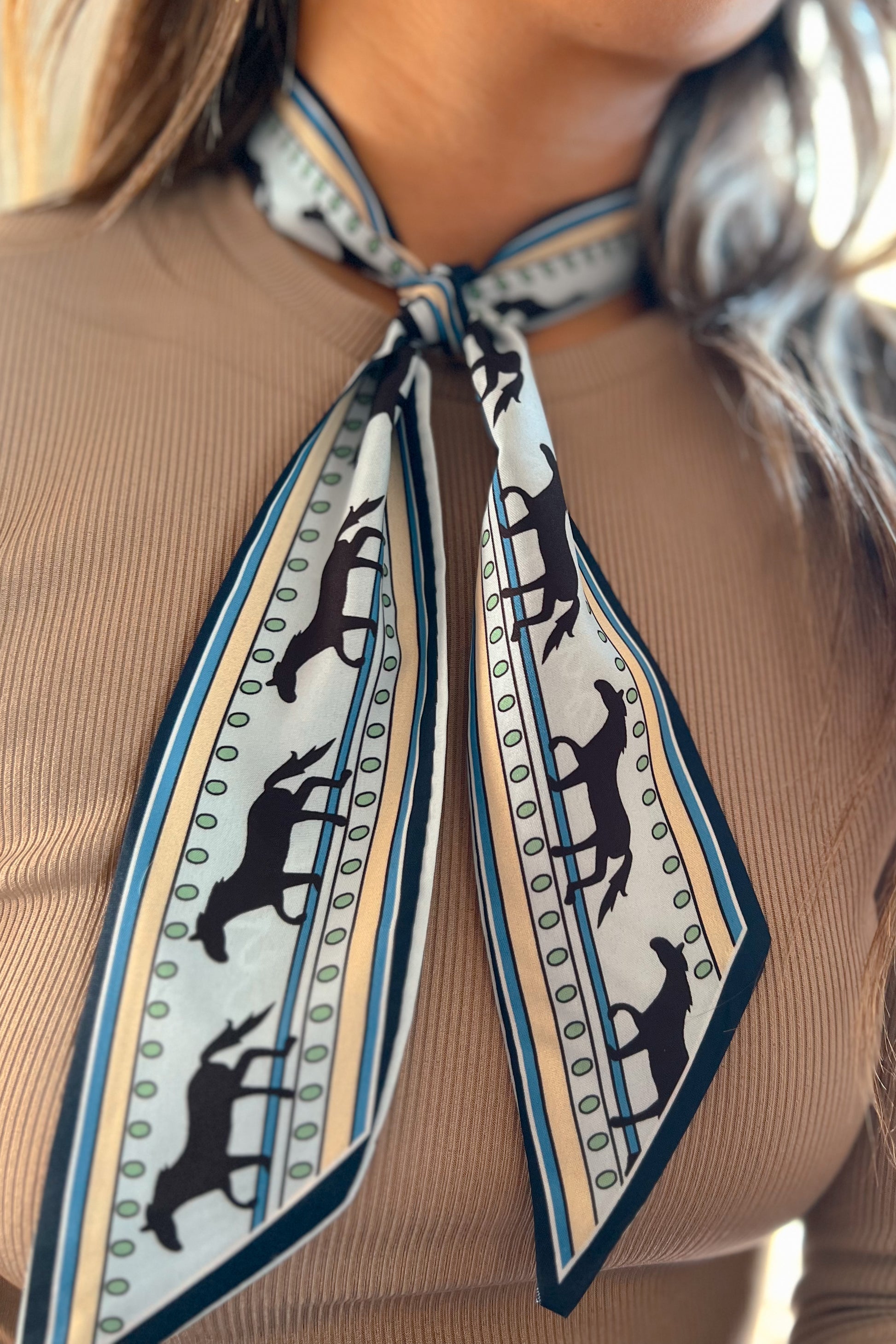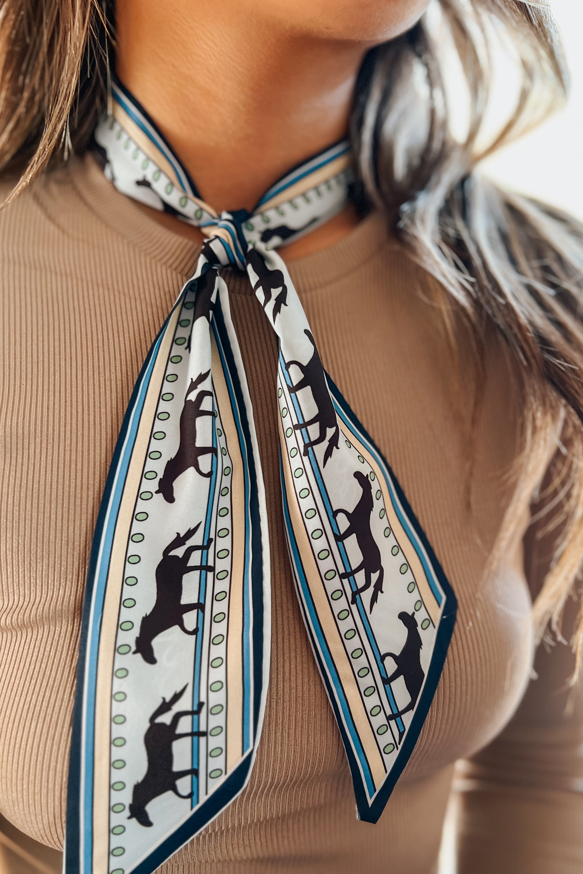 Add a touch of western charm to any look with our Kayce Twilly. This versatile accessory can be styled a dozen ways — tie it around your neck, wrap it on your hat, use it as a hair ribbon, or accent your favorite handbag. The warm brown tones and classic stripe pattern make it the perfect finishing touch for any season.