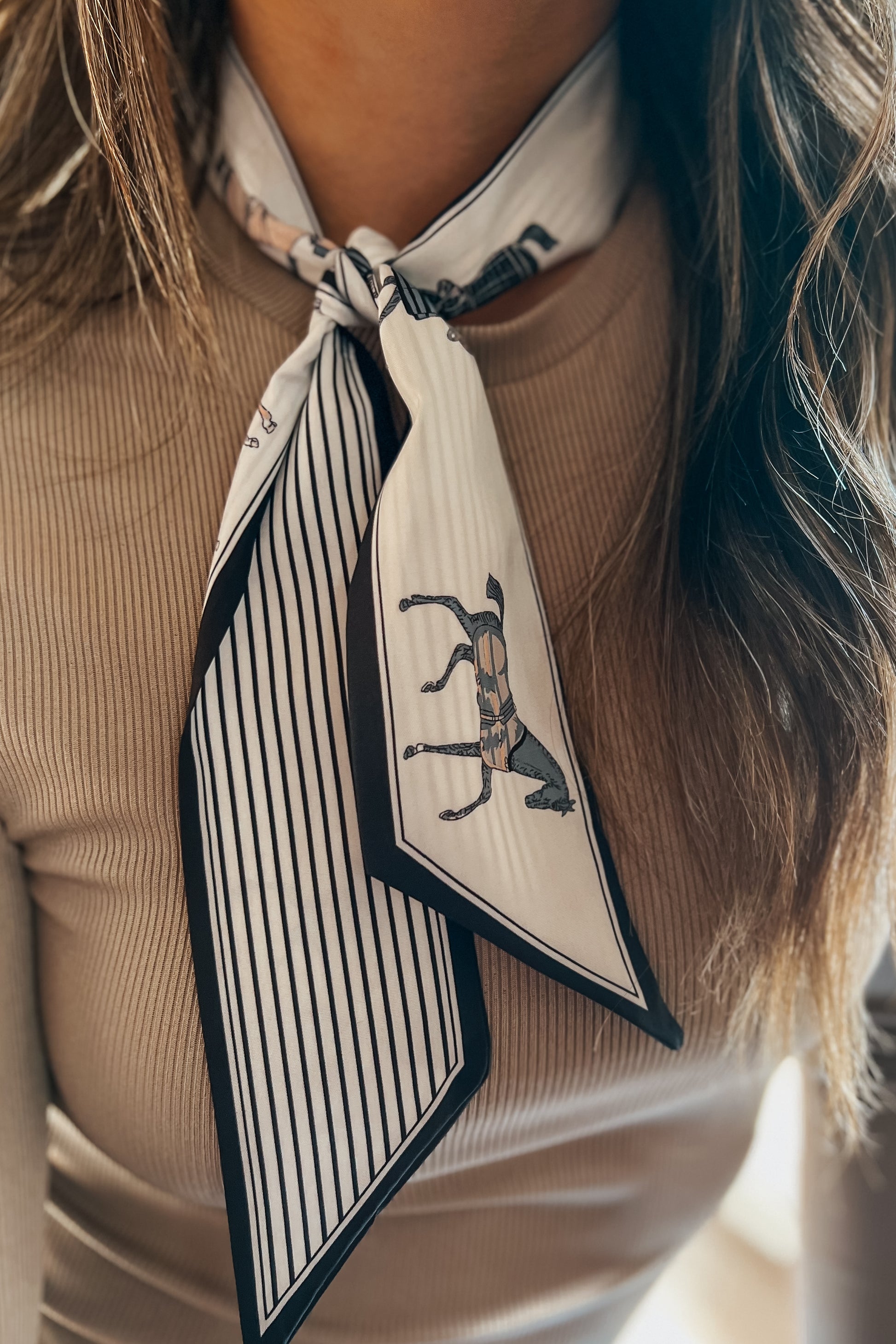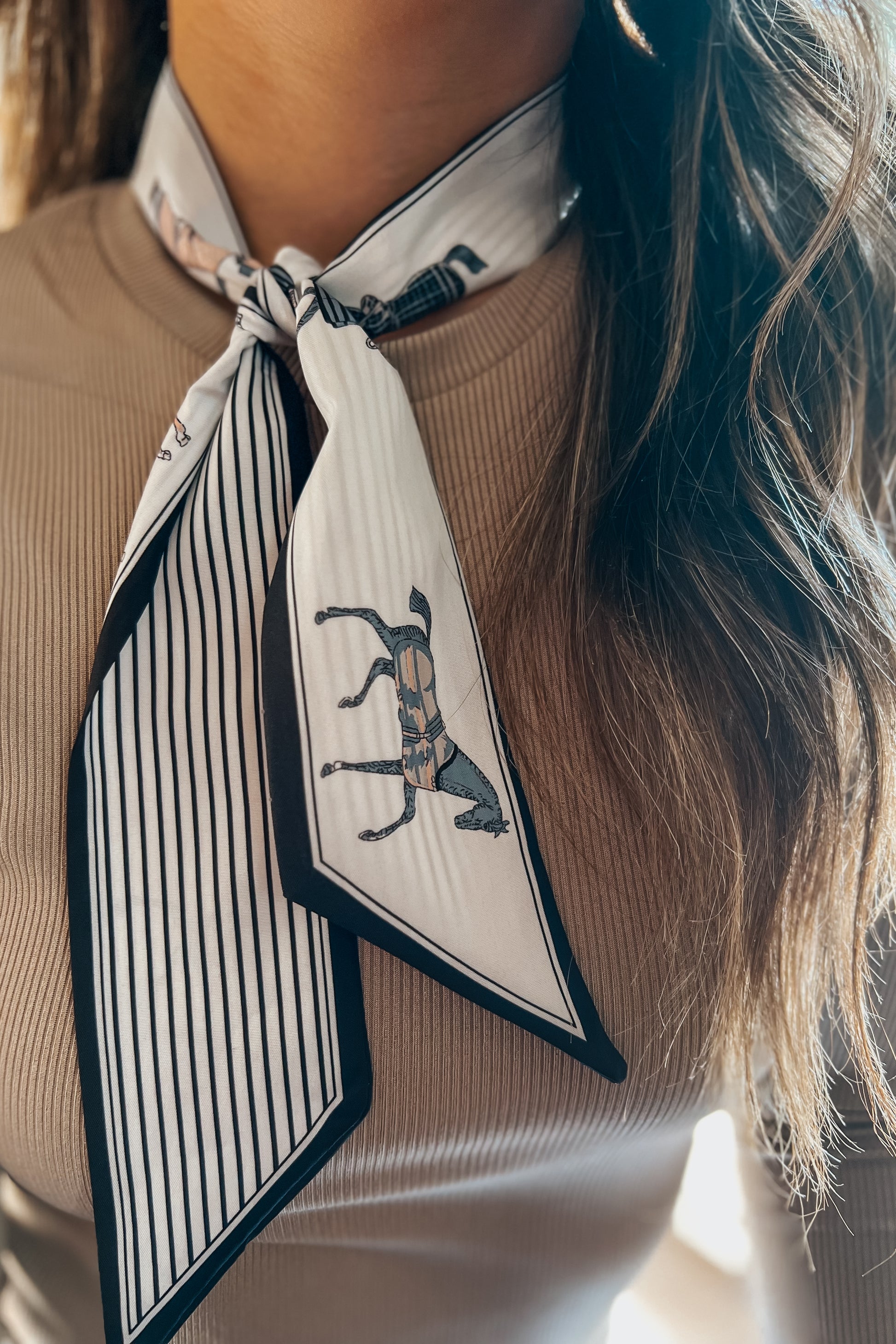 Add a touch of western charm to any look with our striped pony Twilly. This versatile accessory can be styled a dozen ways — tie it around your neck, wrap it on your hat, use it as a hair ribbon, or accent your favorite handbag. The warm brown tones and classic stripe pattern make it the perfect finishing touch for any season.