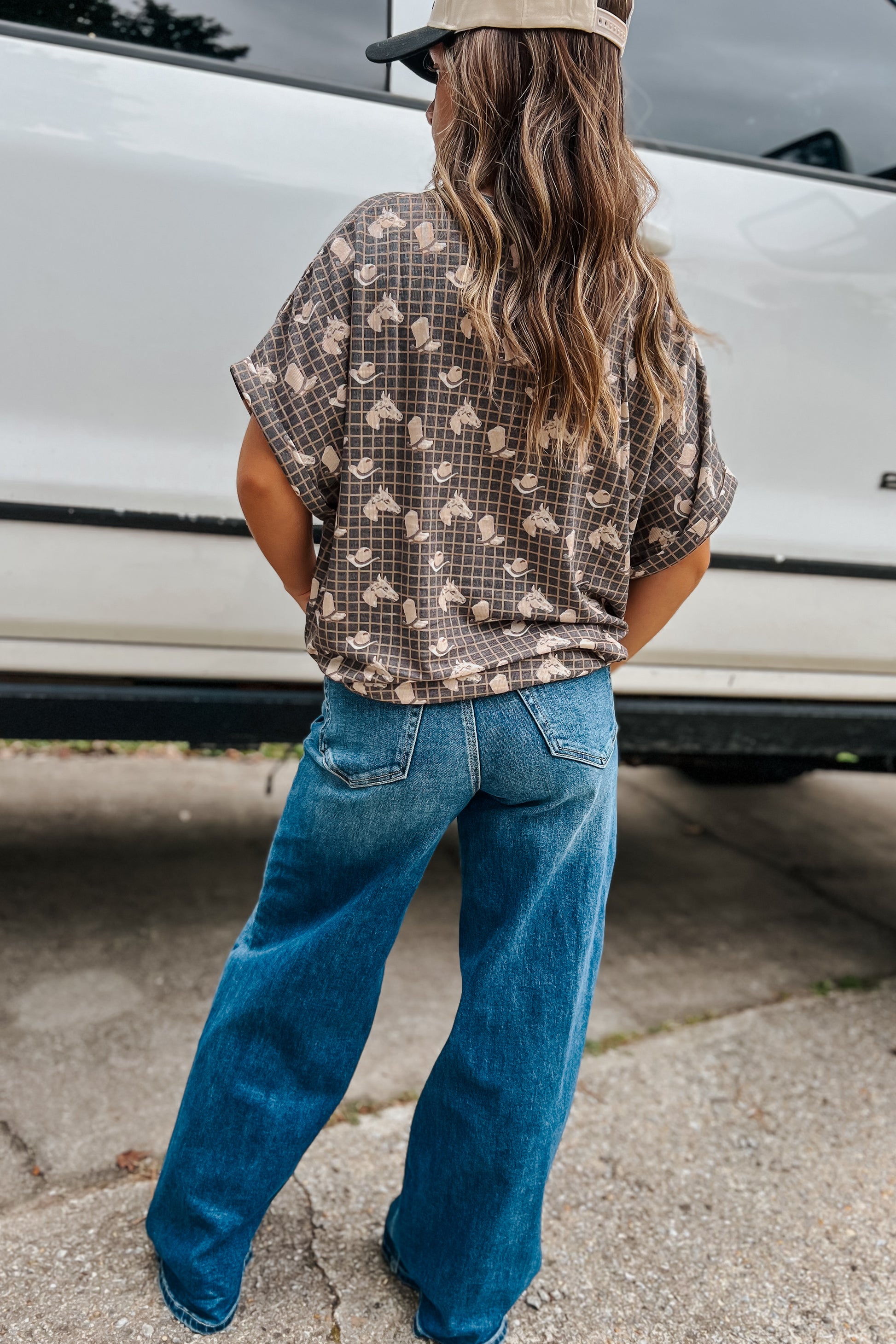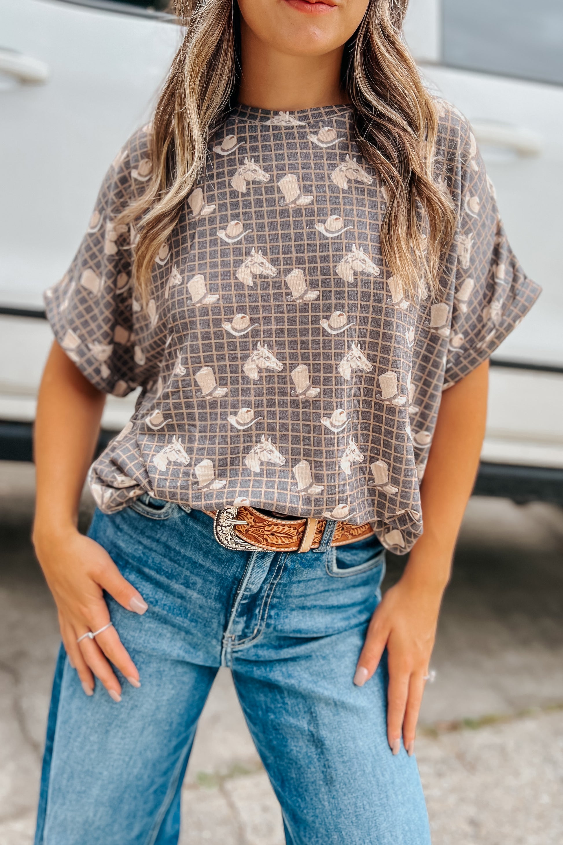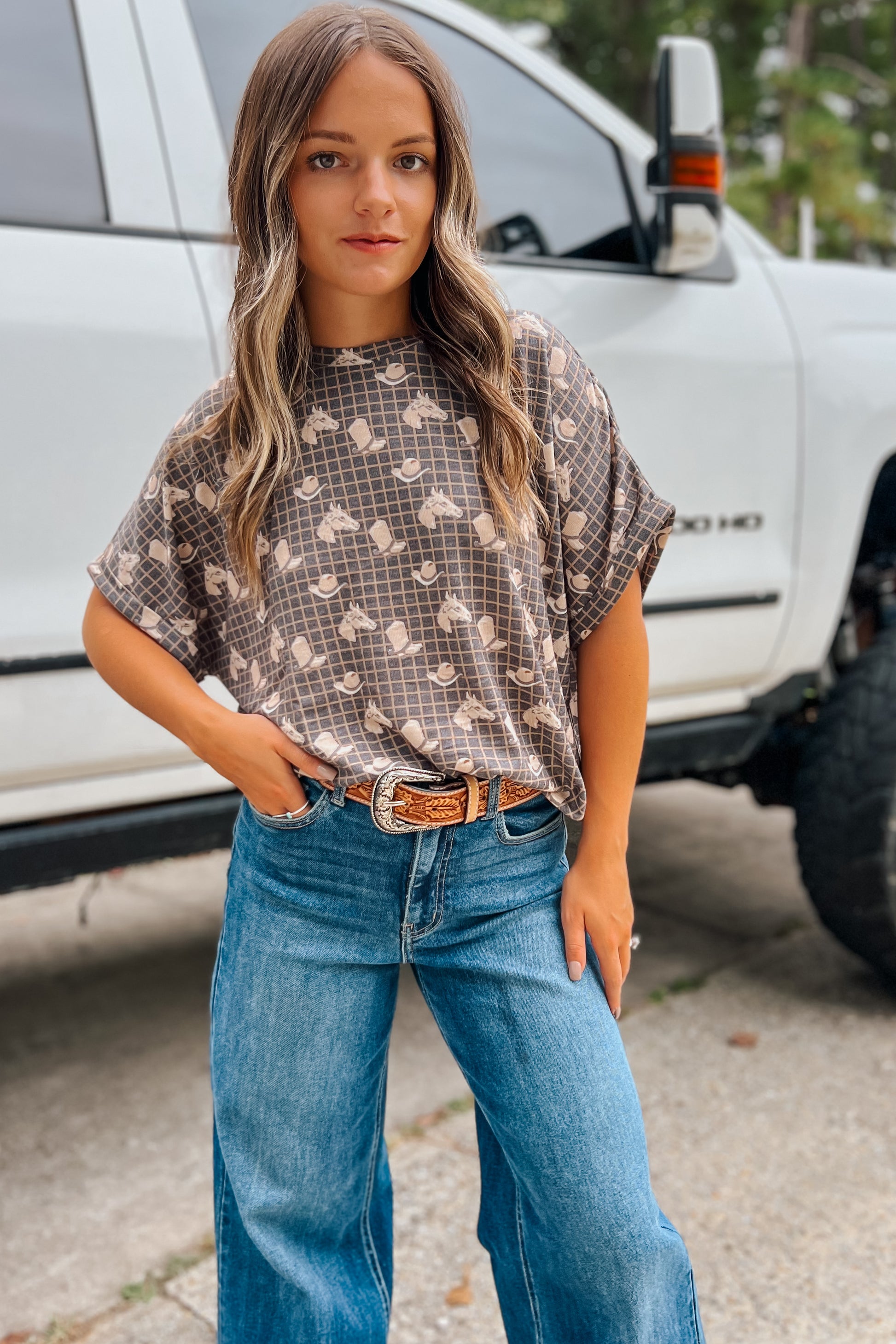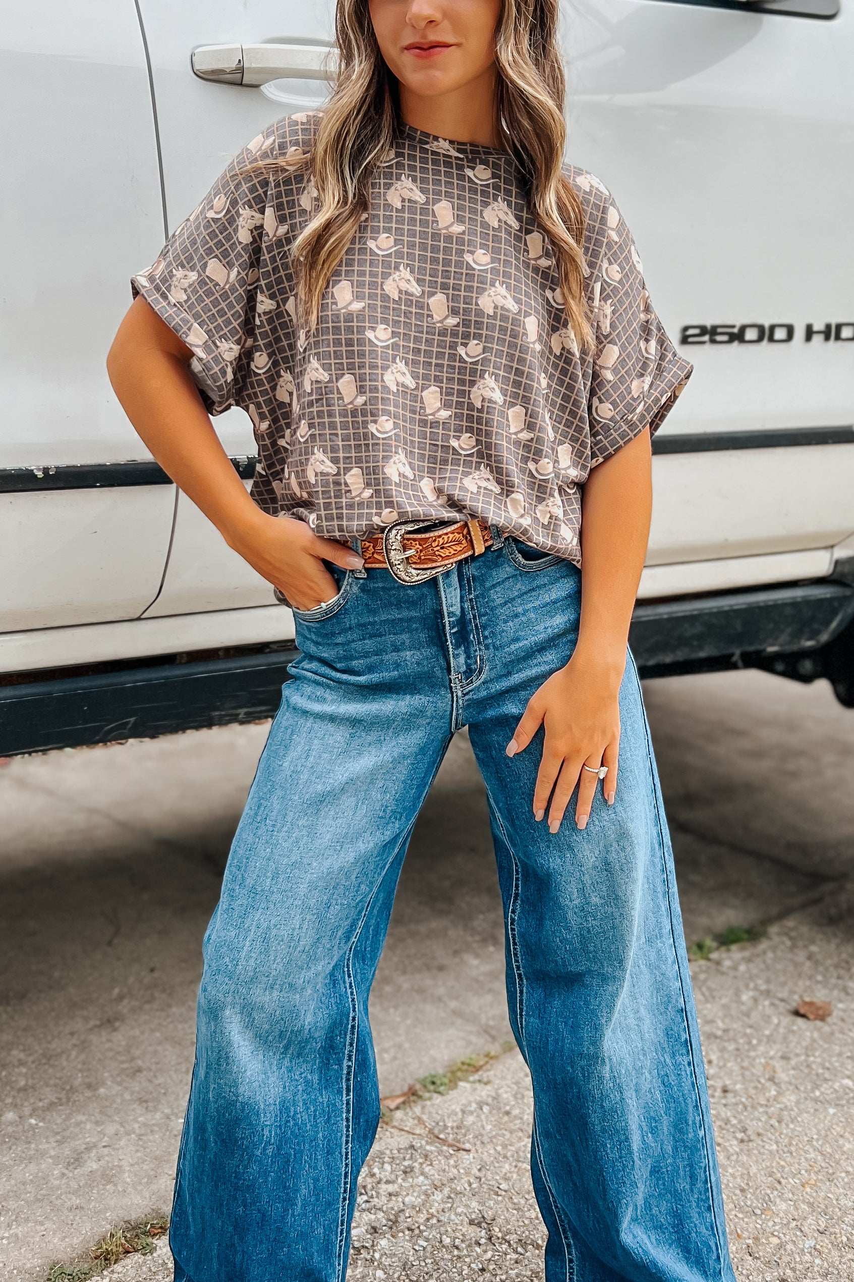 Expertly crafted for a relaxed, western-inspired look, the Grit N' Grind Tee boasts an ultra oversized fit and cuffed sleeves. Perfect for those seeking effortless style and comfort.