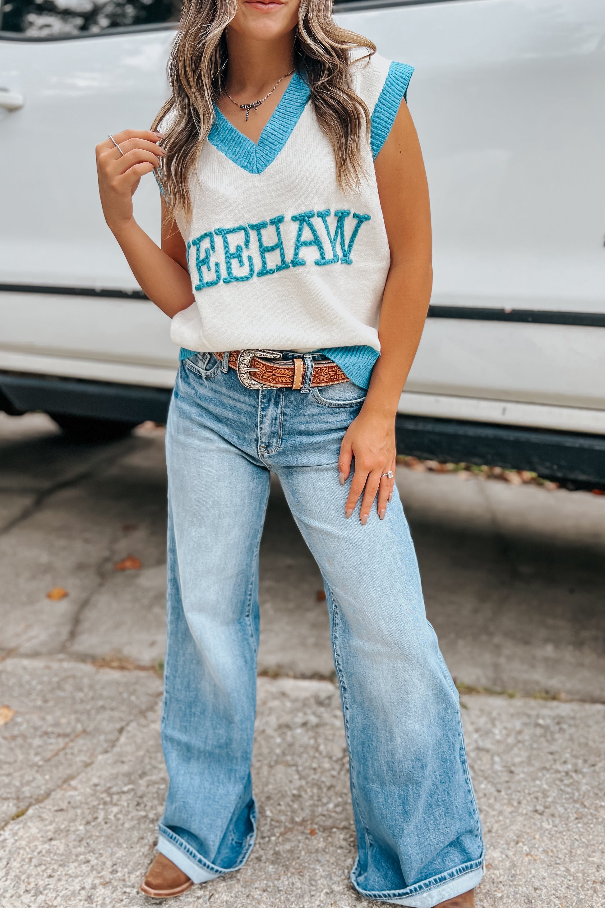 The Yeehaw Sweater Vest is a stylish and versatile addition to your wardrobe. With a classic v-neck design, this vest is perfect for both casual and formal occasions. It offers both comfort and durability. Get ready to embrace the western trend with the Yeehaw Sweater Vest.